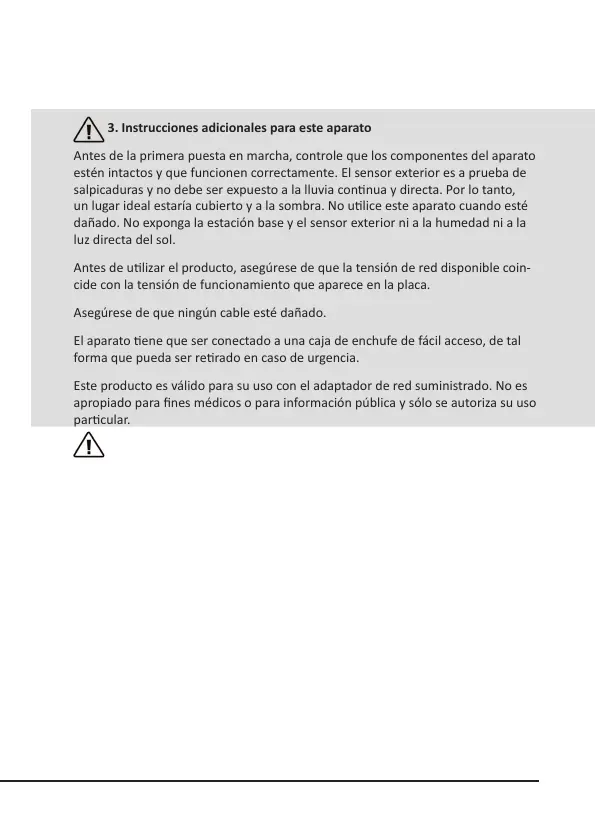 dañado. No exponga la estación base y el sensor exterior ni a la humedad ni a la