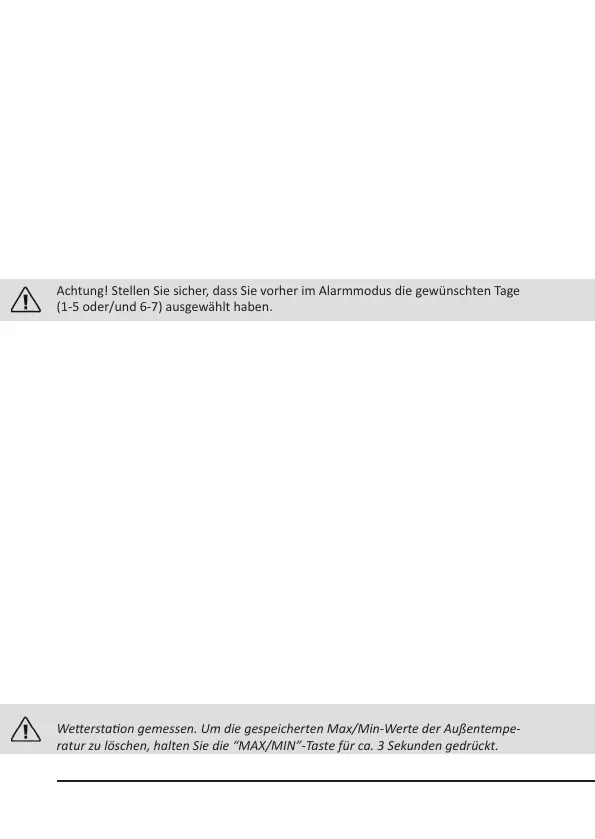 Achtung! Stellen Sie sicher, dass Sie vorher im Alarmmodus die gewünschten Tage