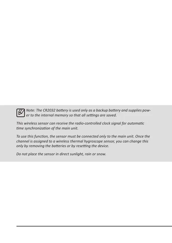 the weather staon and insert a CR2032 baery. Pay aenon to the correct