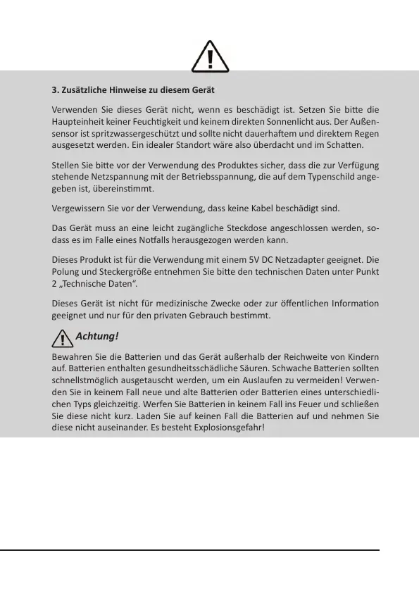 Bewahren Sie die Baerien und das Gerät außerhalb der Reichweite von Kindern
