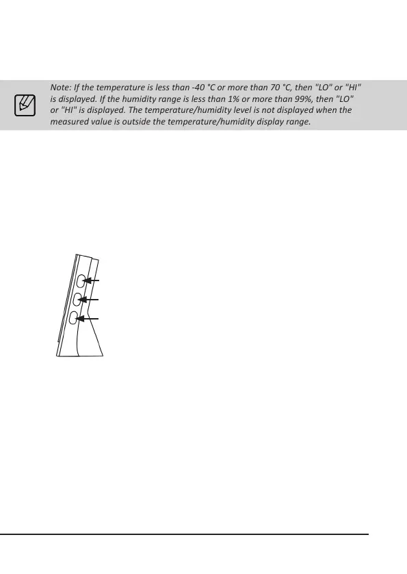 or "HI" is displayed. The temperature/humidity level is not displayed when the