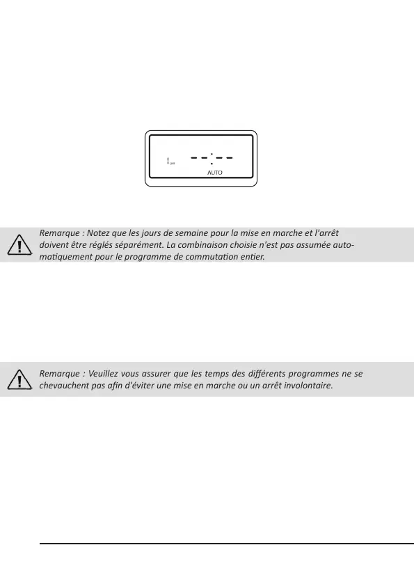 Remarque : Notez que les jours de semaine pour la mise en marche et l'arrêt