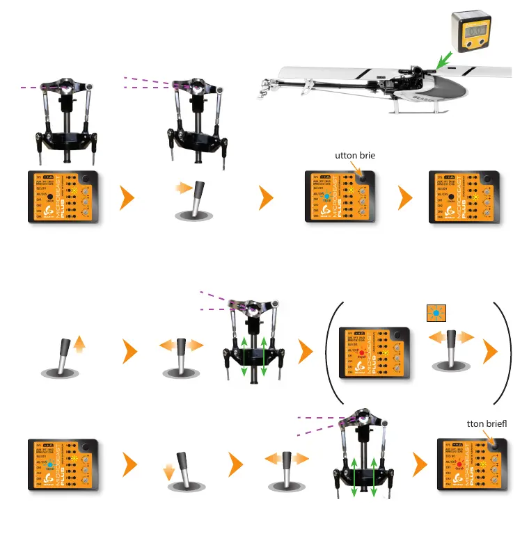 Align rotorhead and rotorblades in parallel to the helicopter‘s longitudinal axis. Attach a pitch