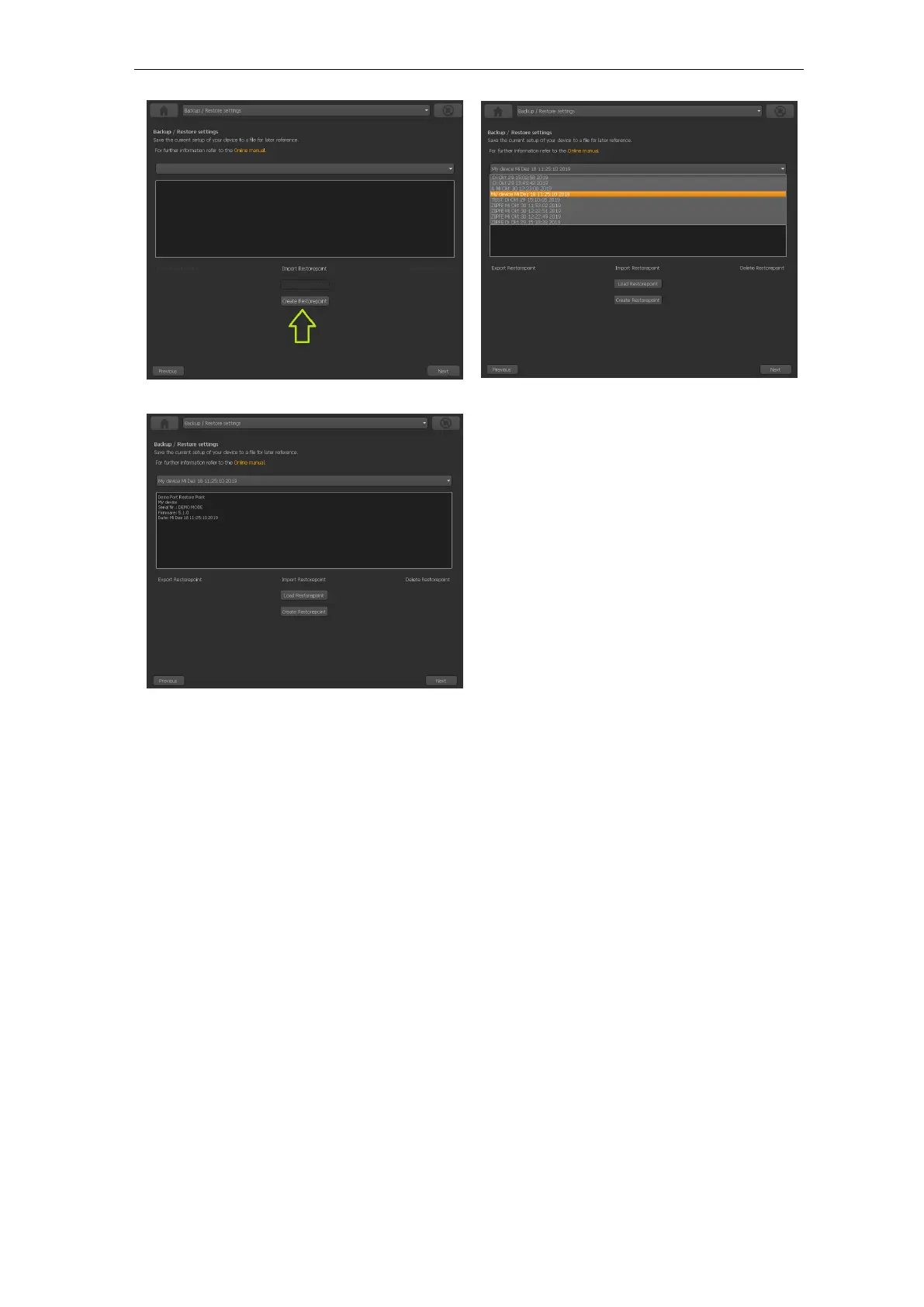 The informations about the restore point will be filled out automatically with