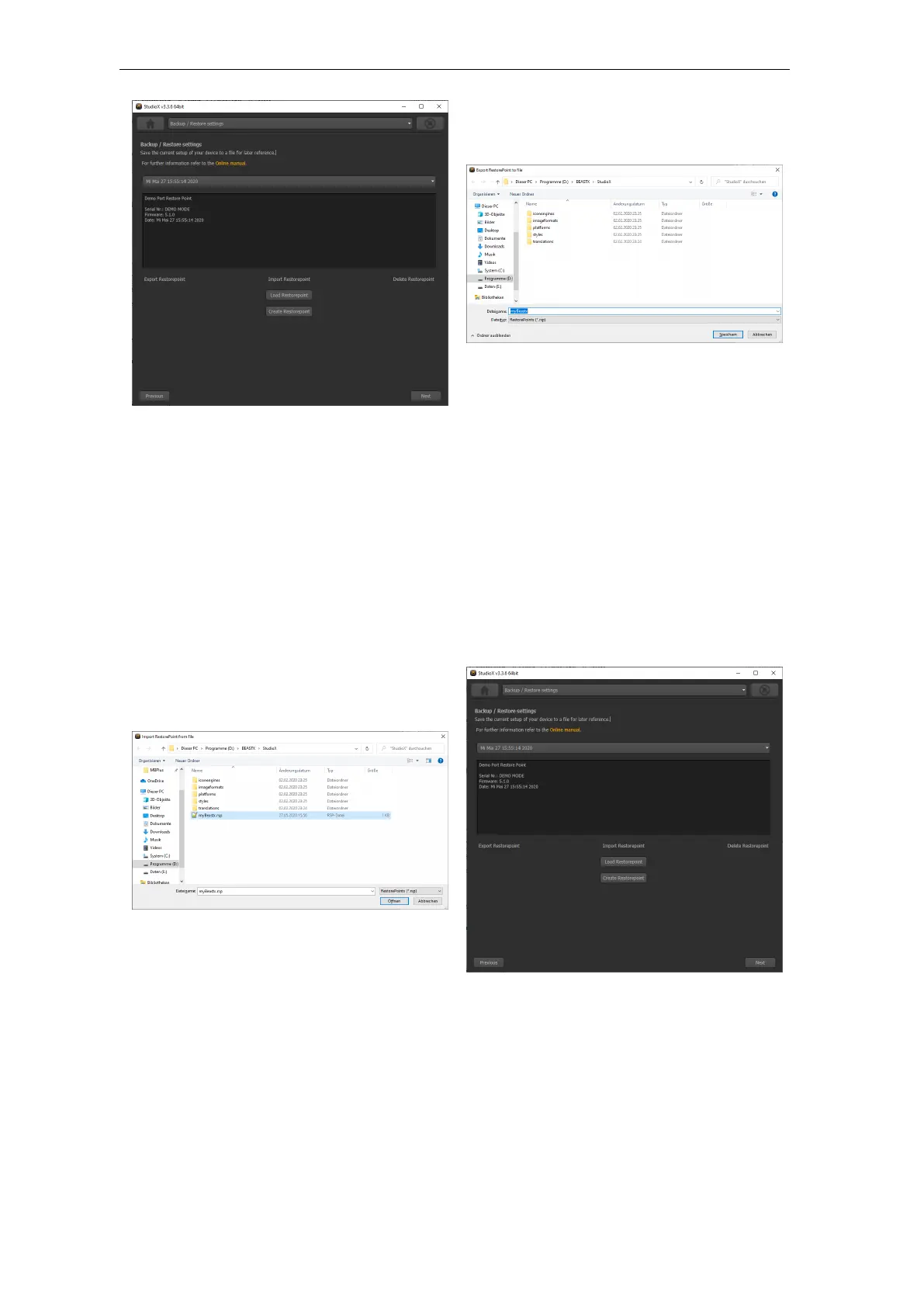”Import Restorepoint” and choose the restorepoint file with ending ”.rsp” from