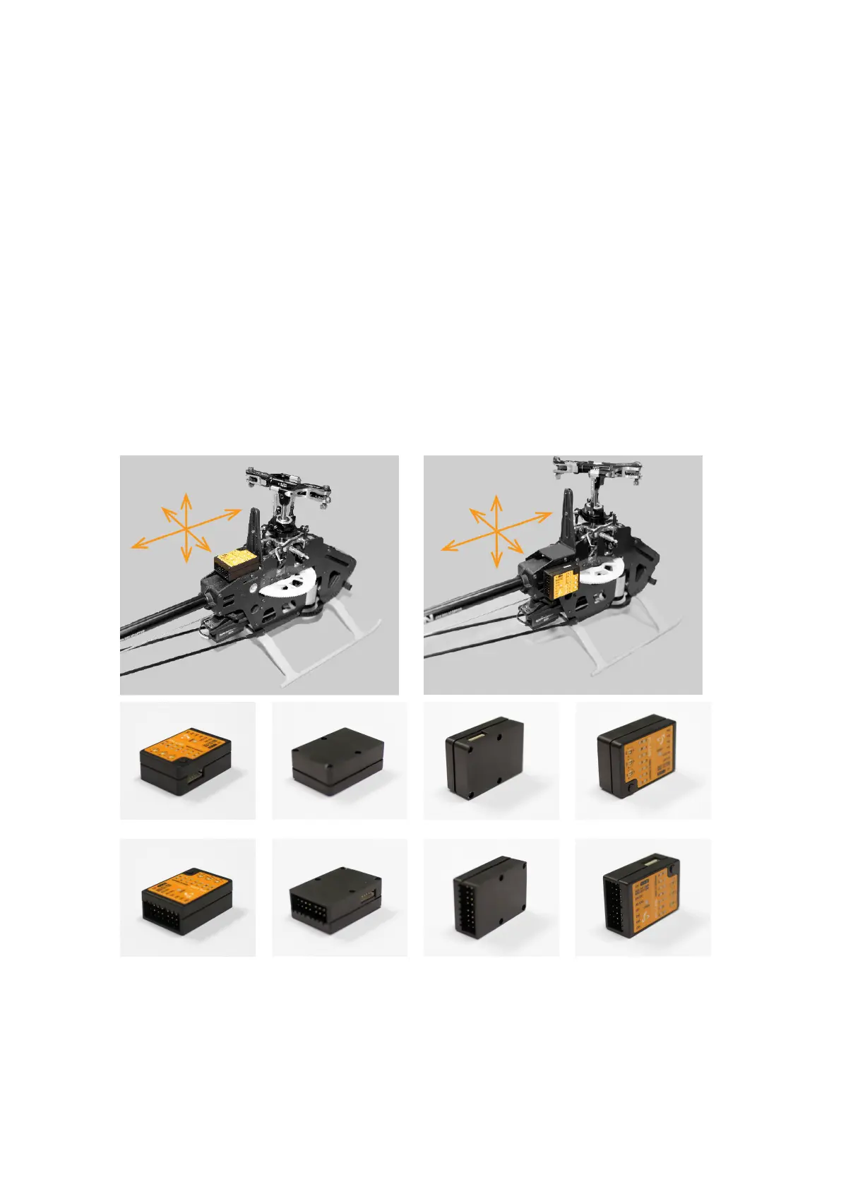 always point towards the front or rear of the helicopter. The small white sensor