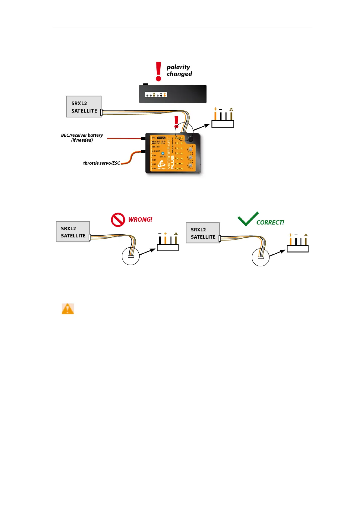 wrong polarity! This will damage your receiver immediately! Check polarity