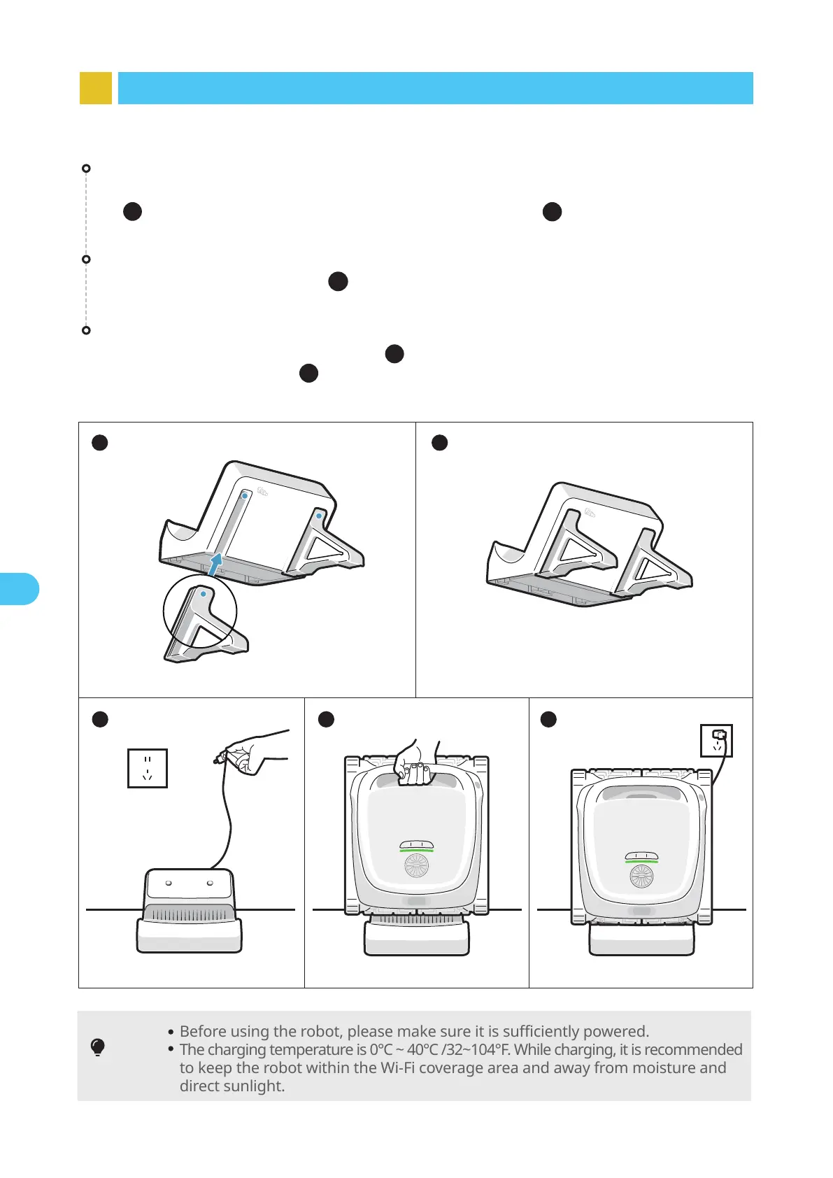 to keep the robot within the Wi-Fi coverage area and away from moisture and