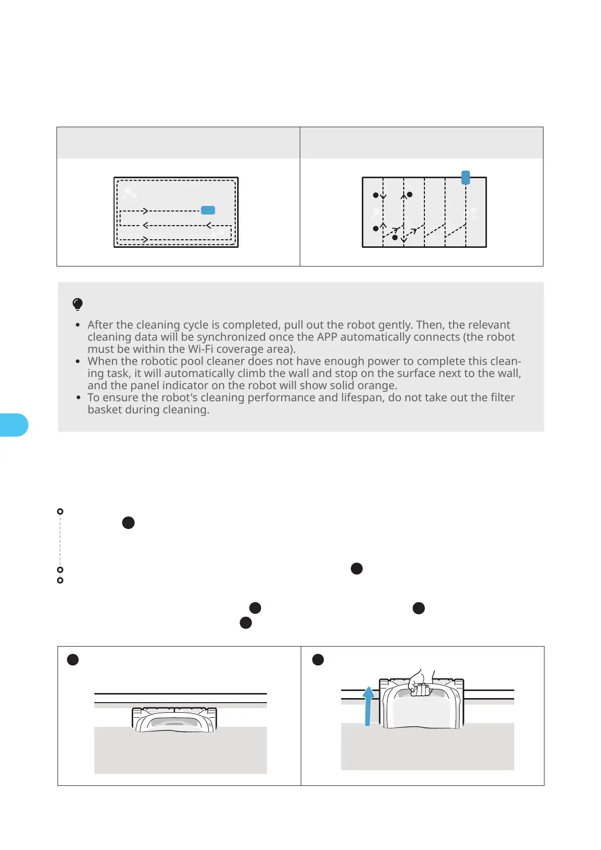 After the cleaning cycle is completed, pull out the robot gently. Then, the relevant