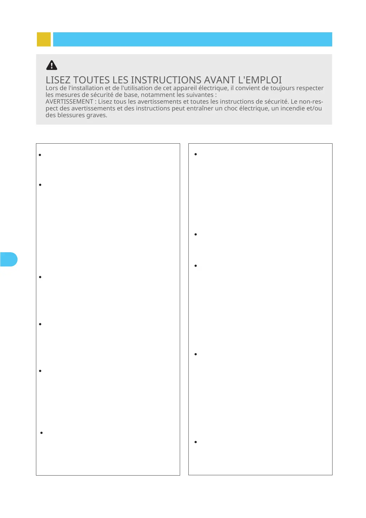 pect des avertissements et des instructions peut entraîner un choc électrique, un incendie et/ou