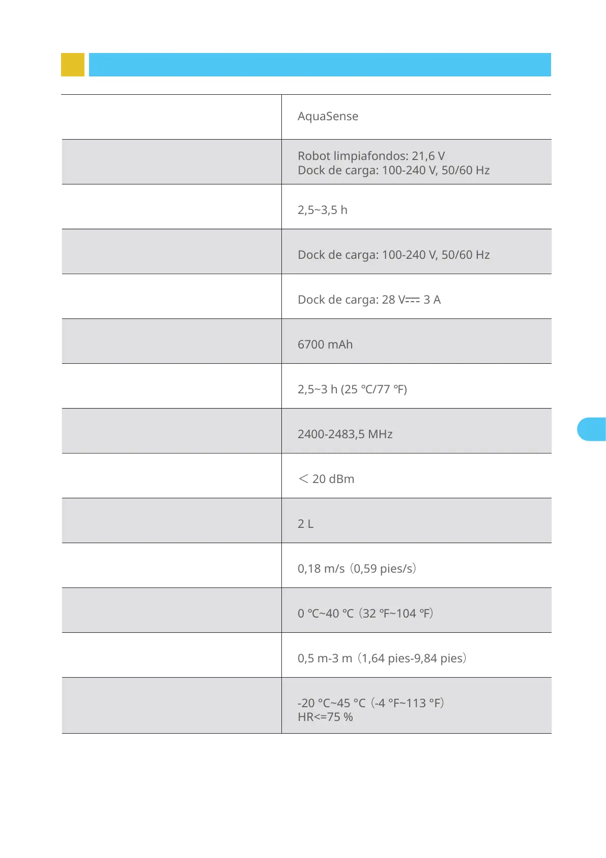 Dock de carga: 100-240 V, 50/60 Hz