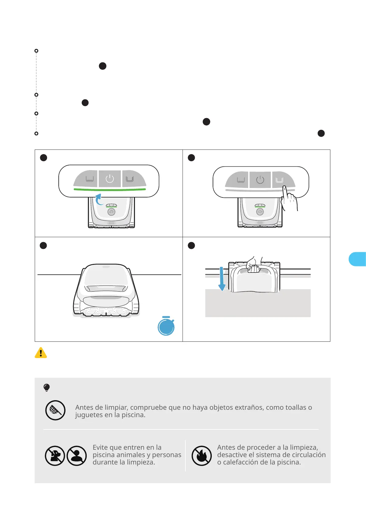 Después de introducir el robot en el agua, comenzará a limpiar automáticamente ( ).