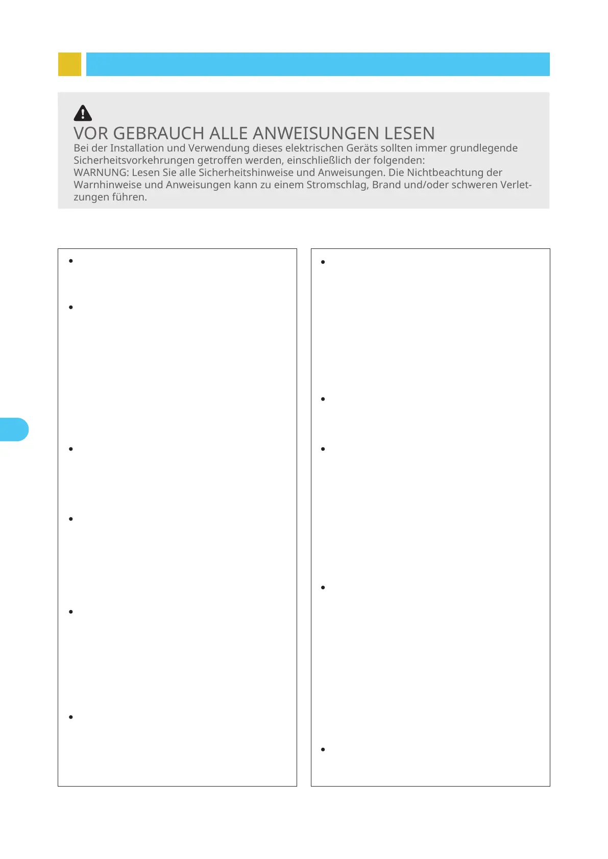 WARNUNG: Lesen Sie alle Sicherheitshinweise und Anweisungen. Die Nichtbeachtung der