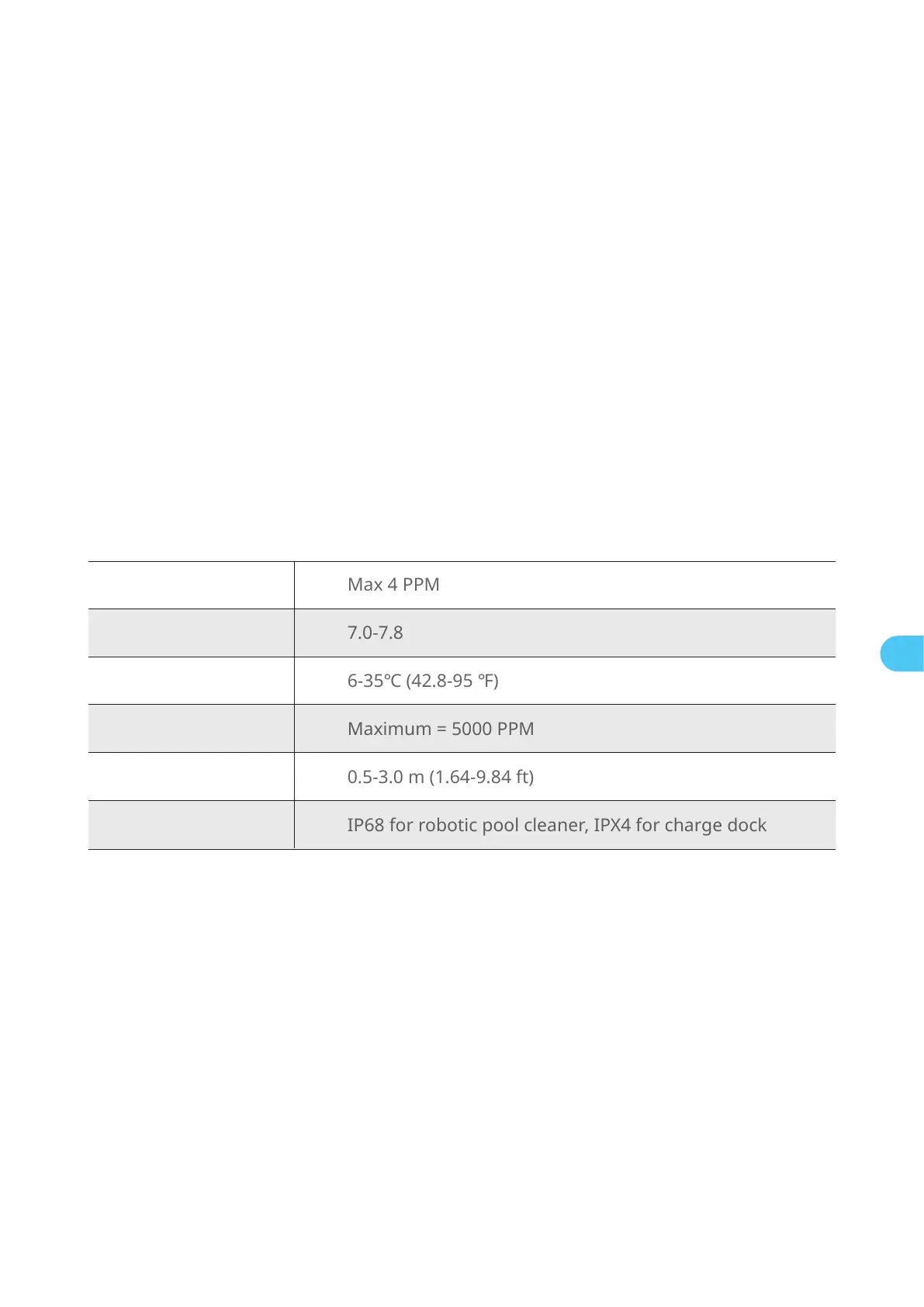 IP68 for robotic pool cleaner, IPX4 for charge dock