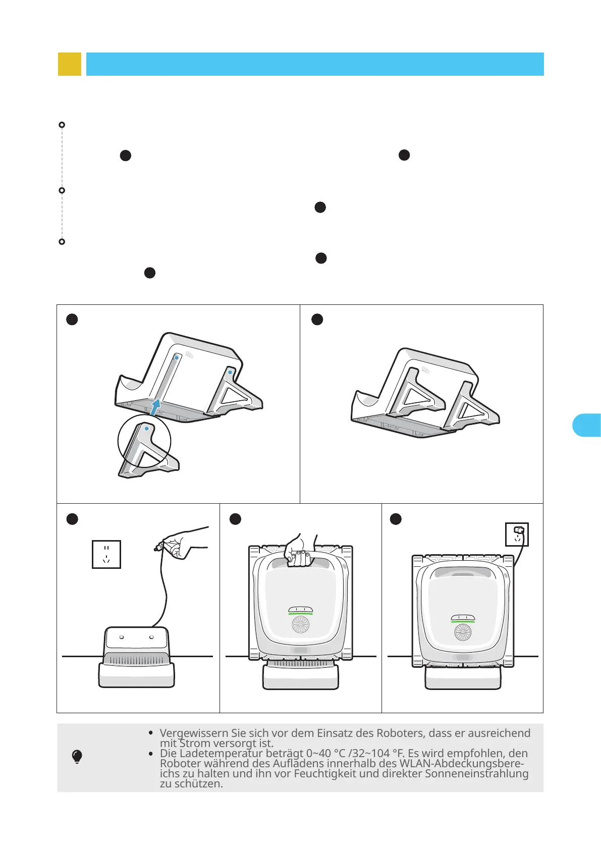 Vergewissern Sie sich vor dem Einsatz des Roboters, dass er ausreichend