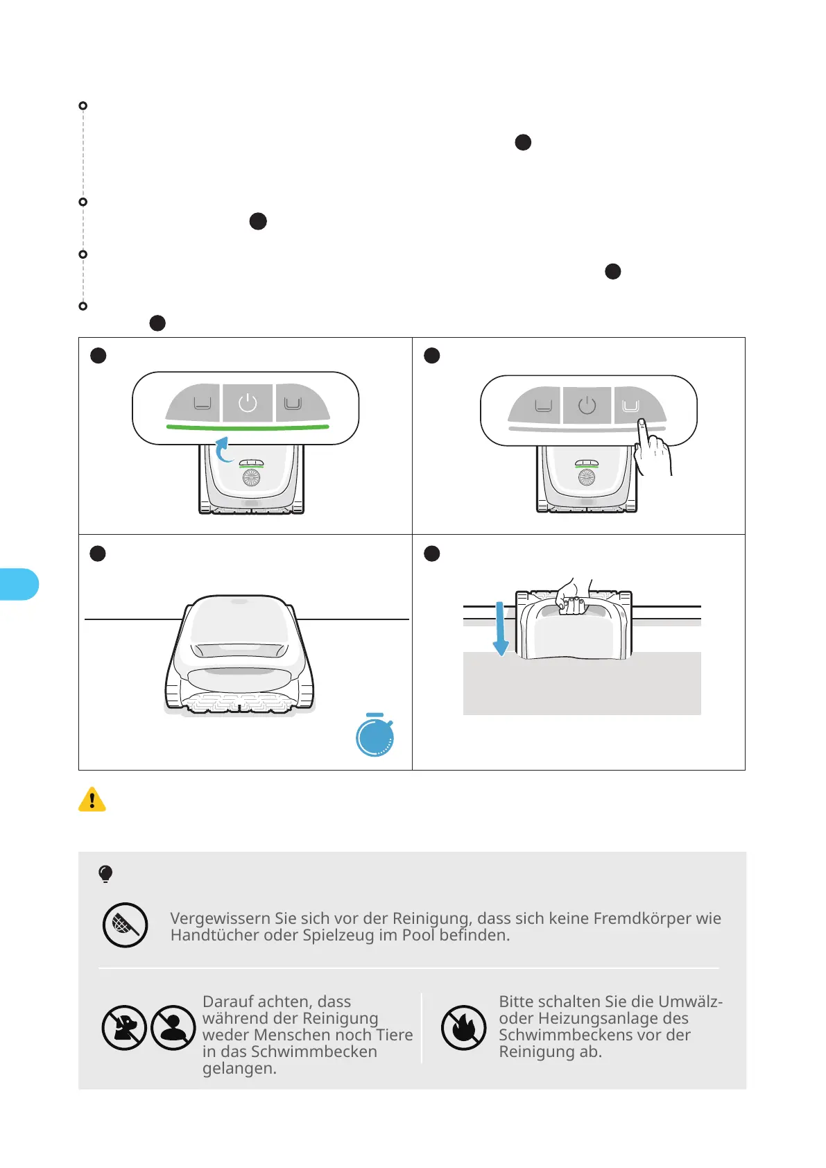 Nachdem der Roboter im Wasser platziert wurde, beginnt er automatisch mit der Reini-