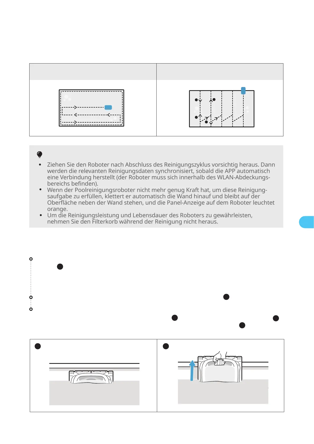 Ziehen Sie den Roboter vorsichtig aus dem Schwimmbecken ( ).