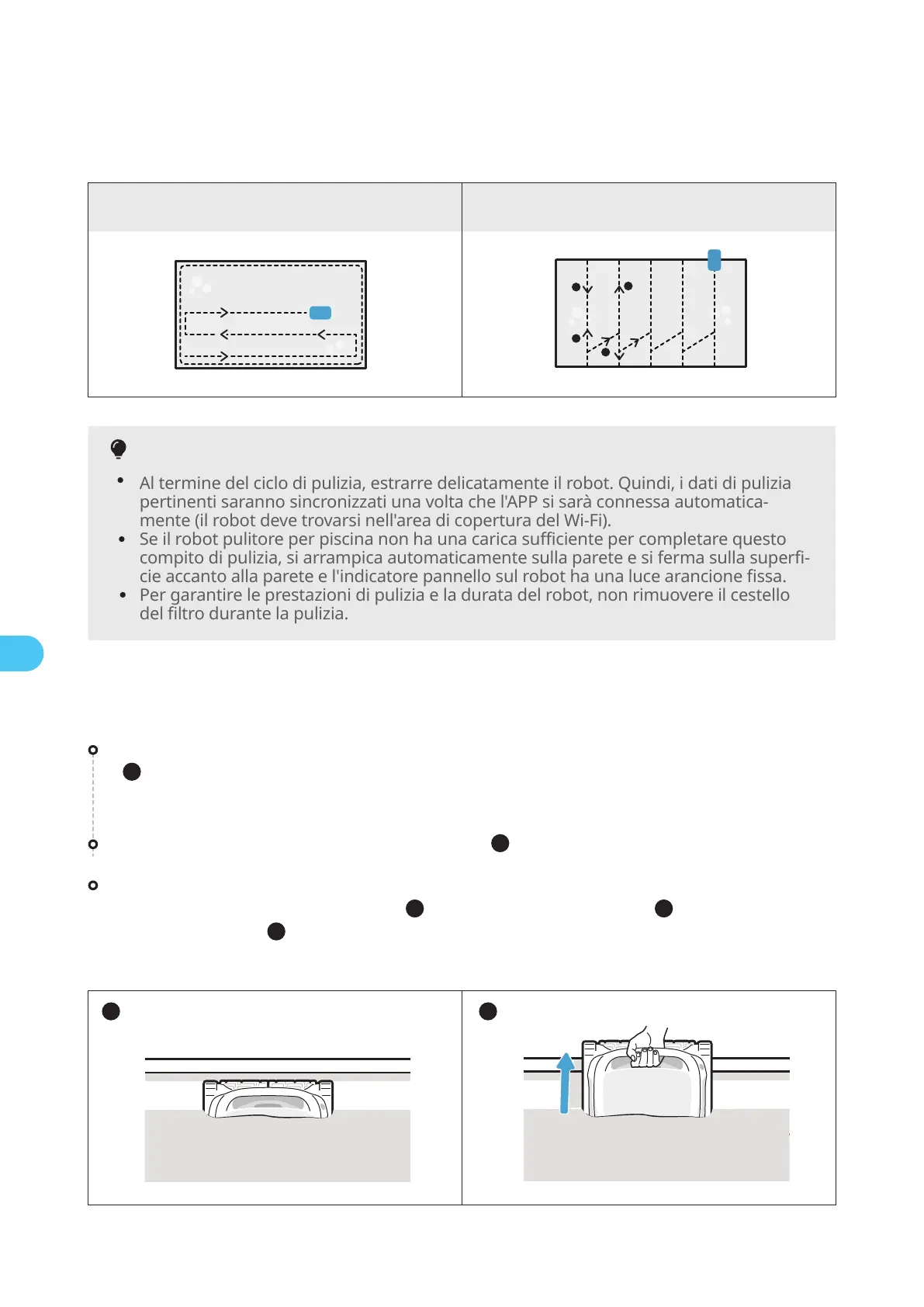 Tirare il robot fuori dalla piscina con delicatezza( ).