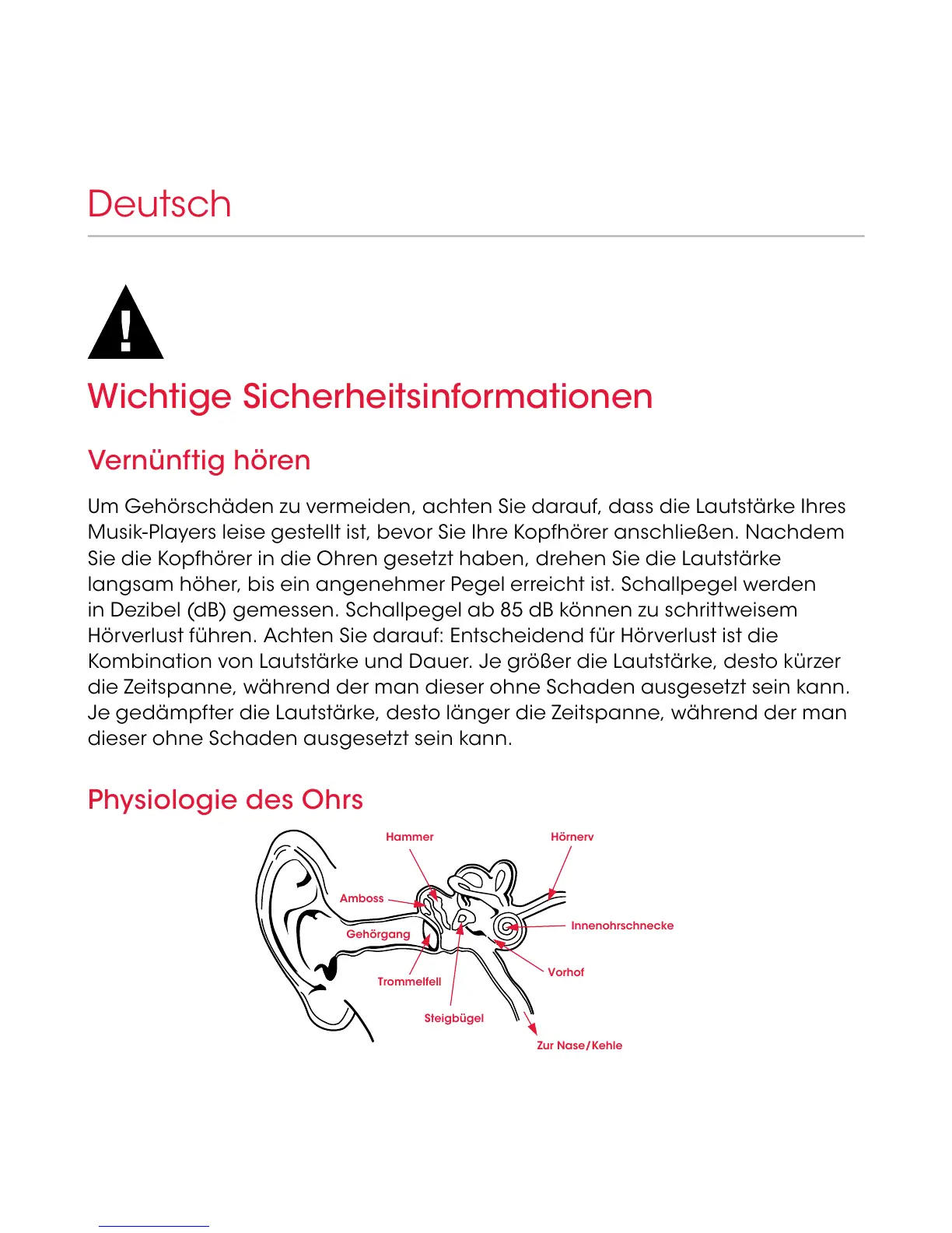 Um Gehörschäden zu vermeiden, achten Sie darauf, dass die Lautstärke Ihres