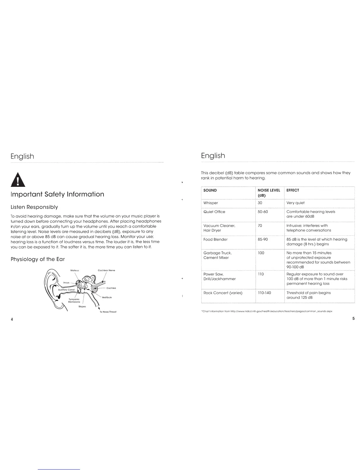 Beats Electronics Mixr - Important Safety Information; Listen Responsibly; Decibel (dB) Table; Sound Levels and Hearing Effects