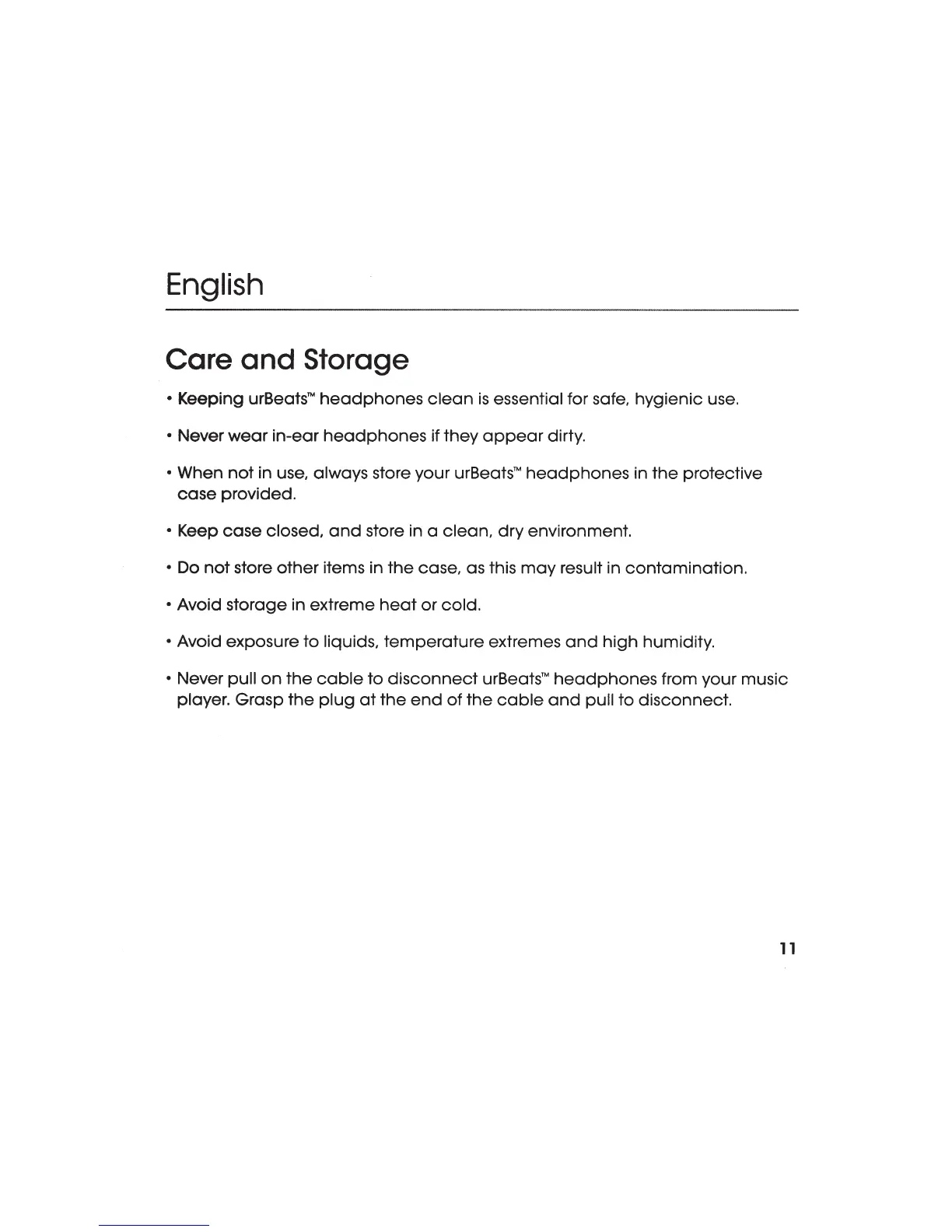 Beats Electronics urbeats - Care and Storage