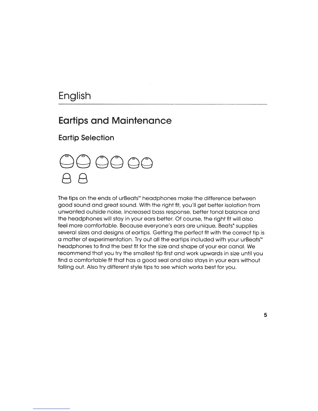 Beats Electronics urbeats - Eartips and Maintenance; Eartip Selection