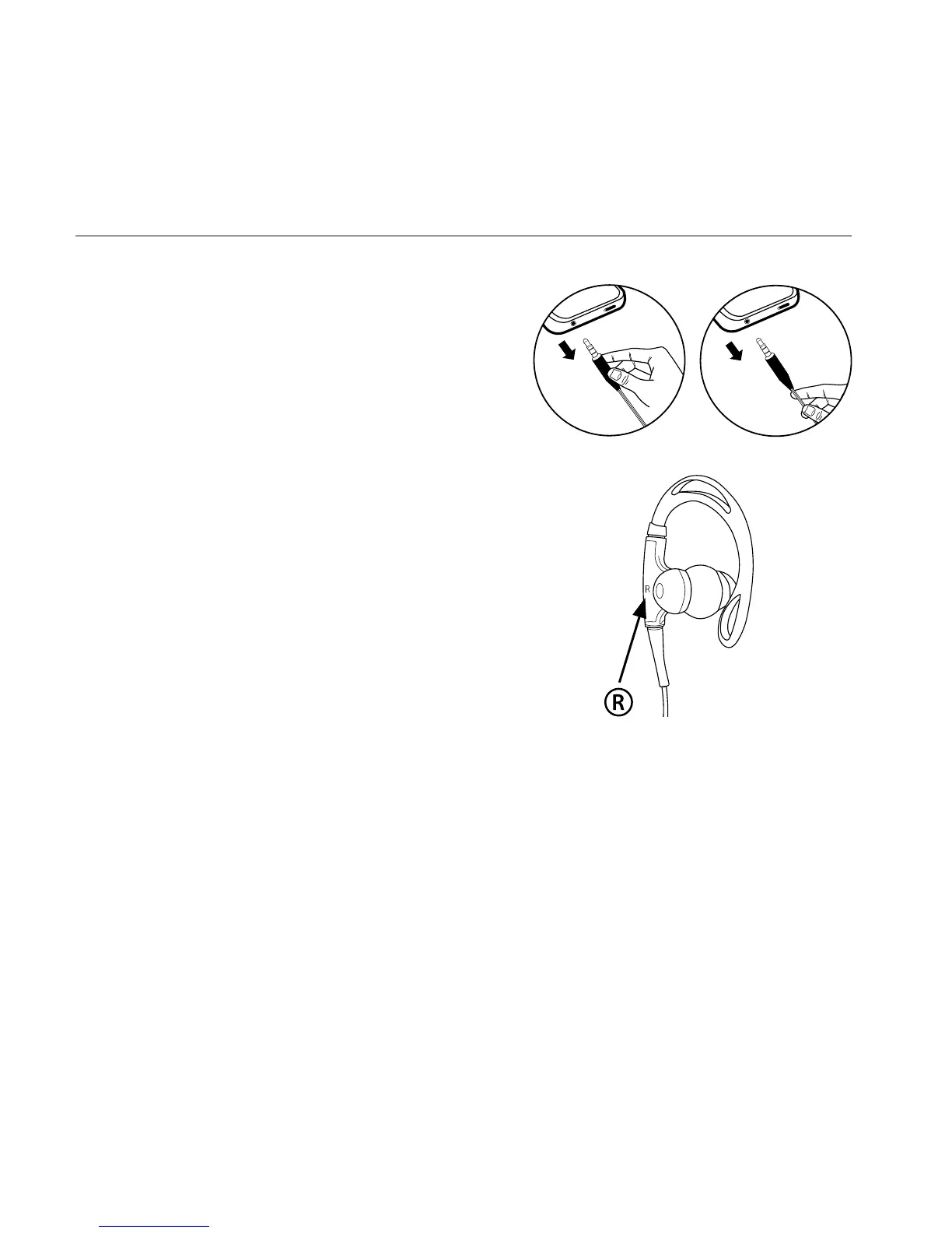 (droite) sur le côté des écouteurs. «L»