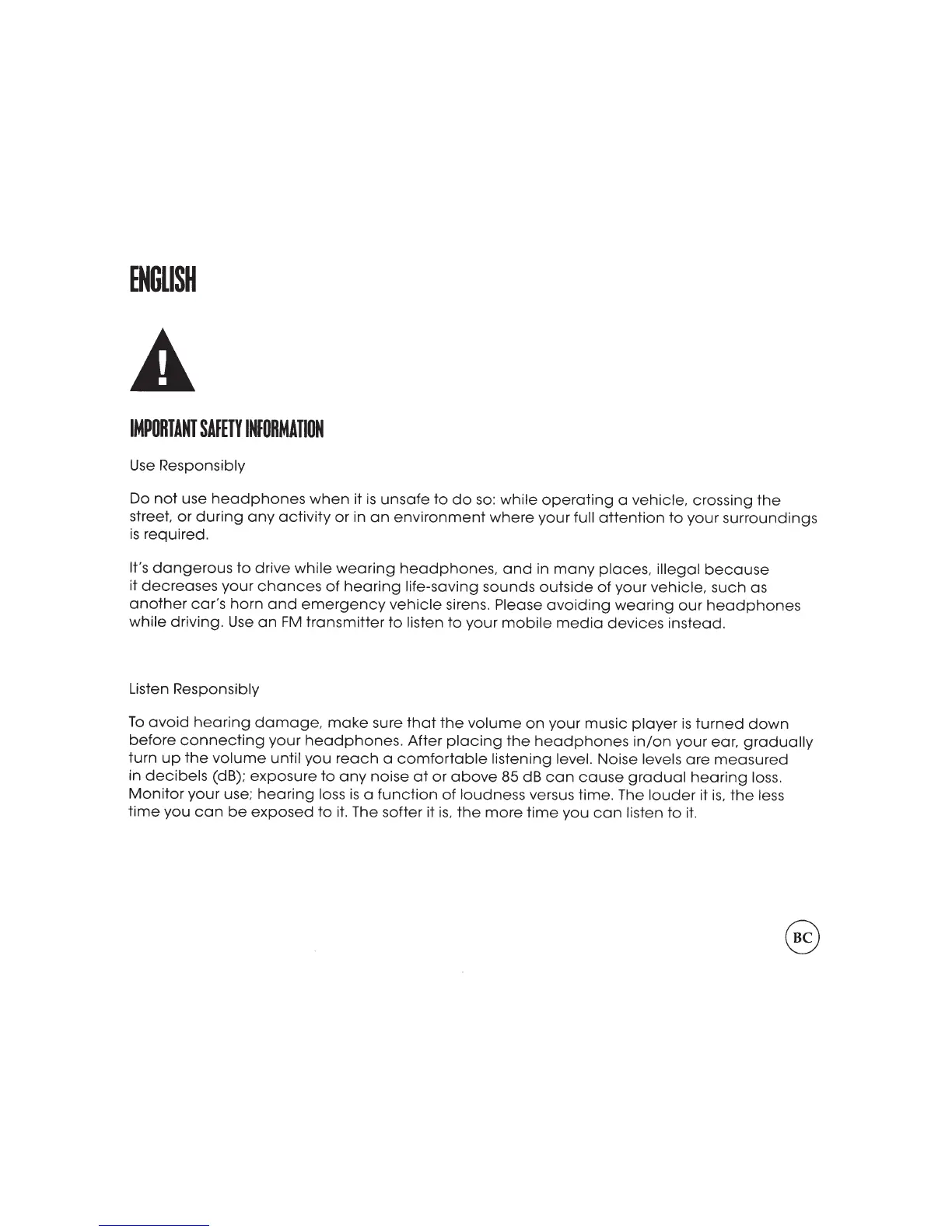 Beats Studio Wireless - IMPORTANT SAFETY INFORMATION; Safe Usage Guidelines; Listening Safely