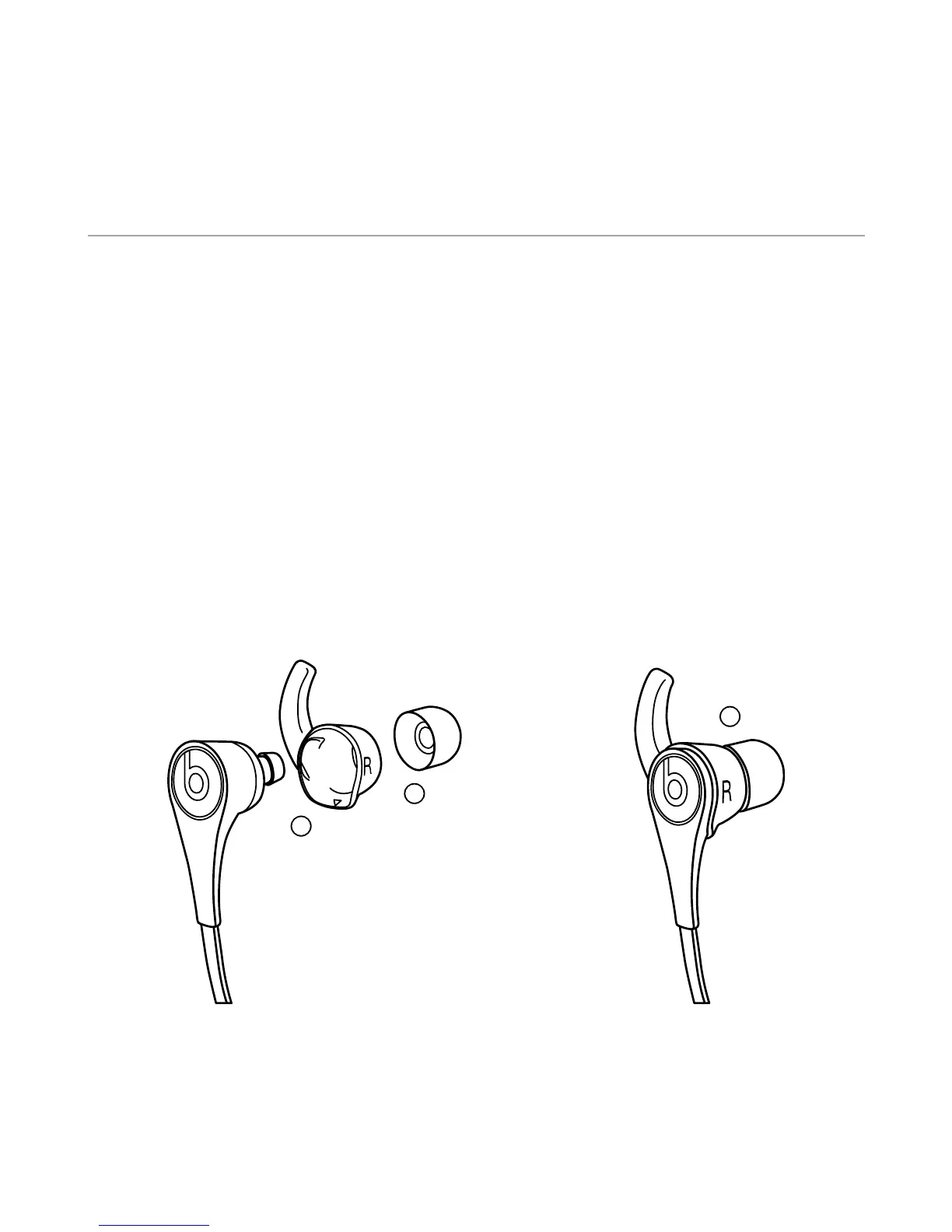 utiliser la pièce de maintien droite (R) avec l’écouteur droit (R) et la pièce de