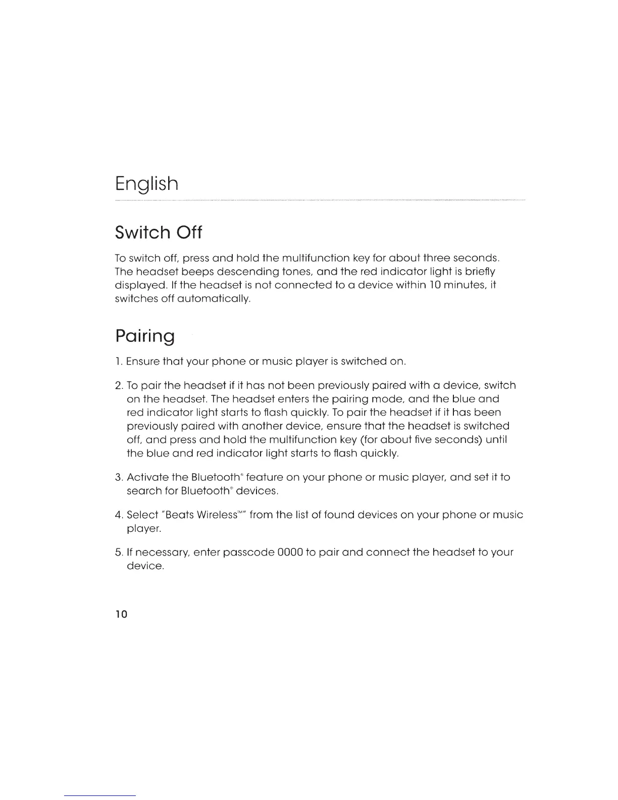 Beats Wireless - Switch Off Headset; Pairing Your Device