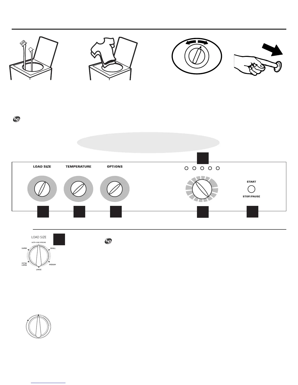 – Pour rajouter de l’eau APRÈS que la laveuse se soit remplie, tournez le bouton de sélection de la taille de la brassée sur RESET