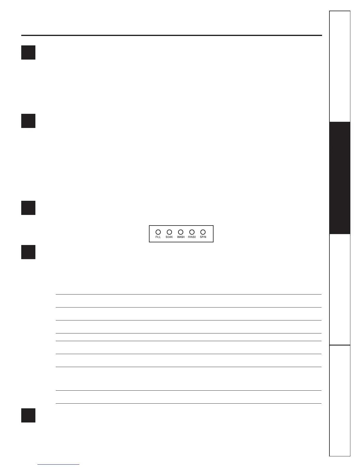 Les Voyants du Programme indiquent l’étape du cycle à laquelle se trouve la laveuse. Lorsque le bouton de Sélection est réglé