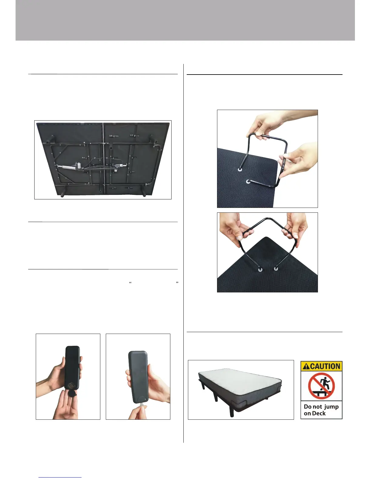 Always use two people when setting up the adjustable base, moving or flipping the adjustable base.