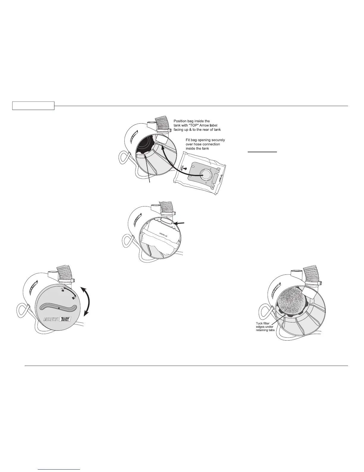 tab is toward bag cover. The top arrow
