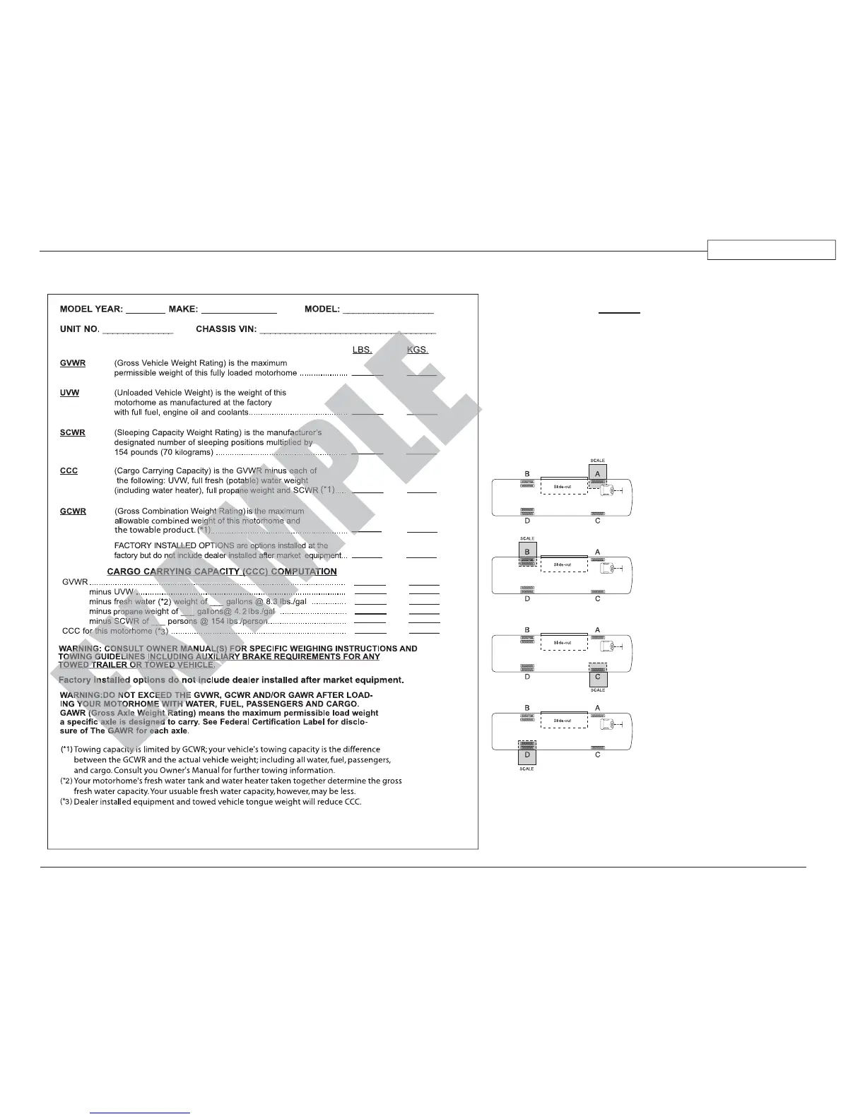 The motorhome must be weighed fully