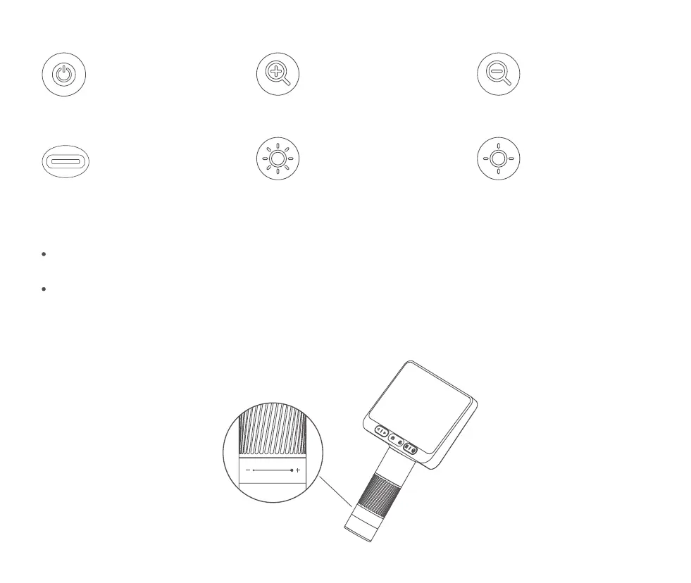 Press and hold the on button at the back of the microscope for 3 seconds, and the small light at the bottom