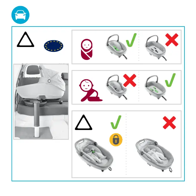 BEBE CONFORT Jade - Child Size and Usage Guidelines; Usage for Children < 60 cm; Usage for Children 60-70 cm