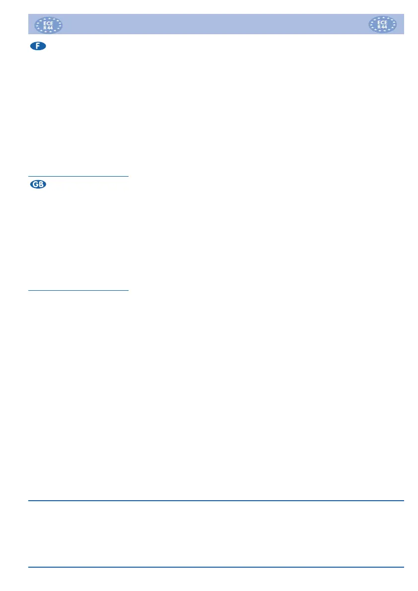Ce dispositif est seulement utilisable sur les véhicules approuvés équipés de ceintures de sécurité 3 points/statiques/à enrouleur, homologuées, conformément au règlement