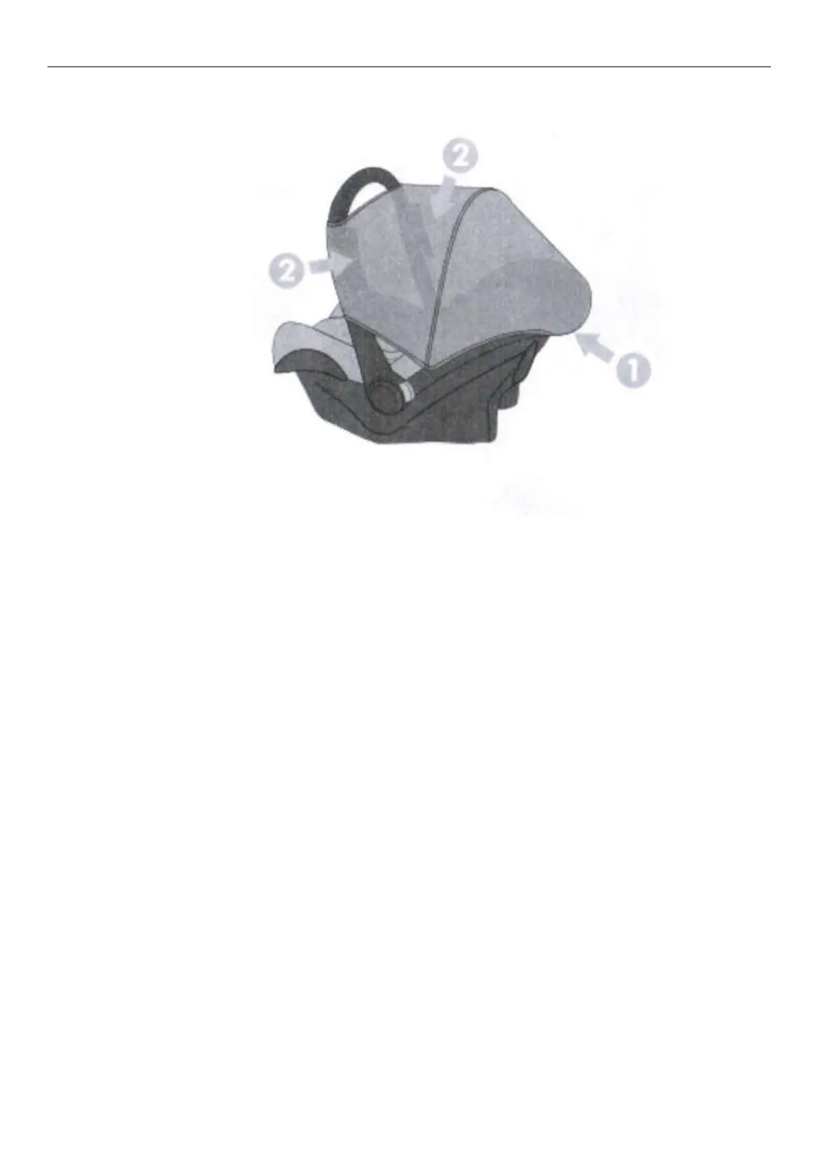 La capucha se fija primero a la posición 1 y luego al asa de transporte