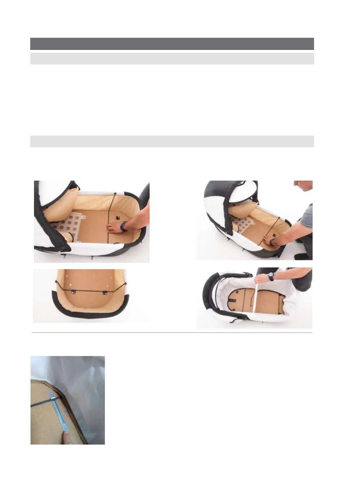 Unfold the baby carriage. If you look under the mattress you see two metal bails which are