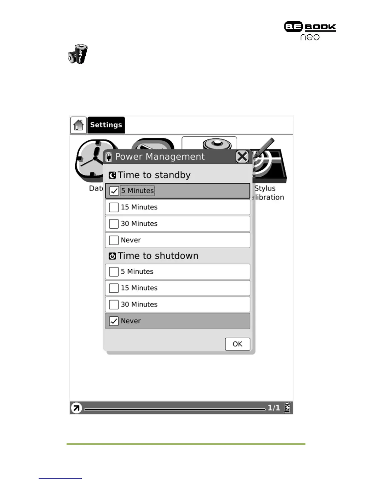 standby and automatically shut down for the device. Note, if the time of shutdown