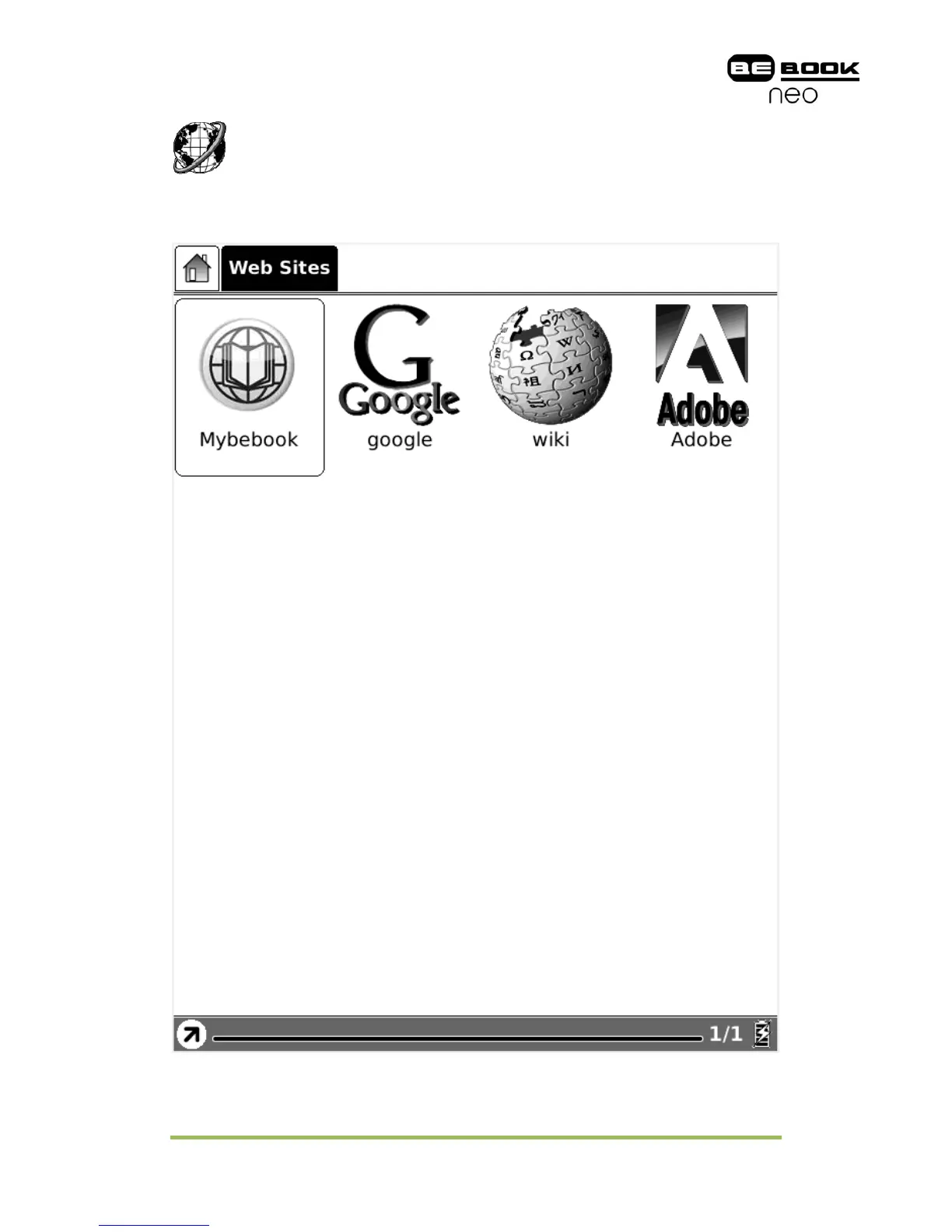BeBook Neo provides entries to access the most common websites.
