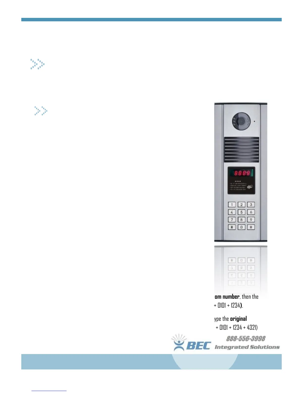 Congratulations on your new Video Intercom System! At BEC Integrated Solutions, we are proud to provide