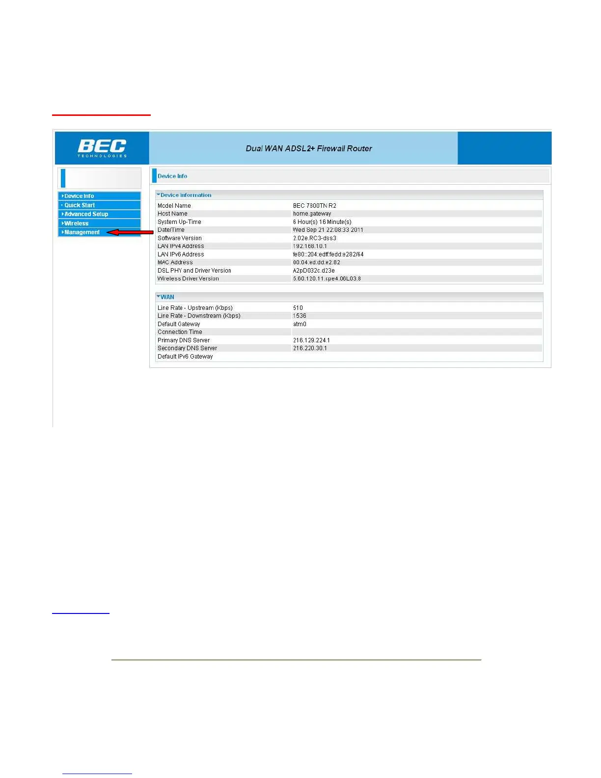 Start the firmware update process by clicking on “Management” on the left side of the page.