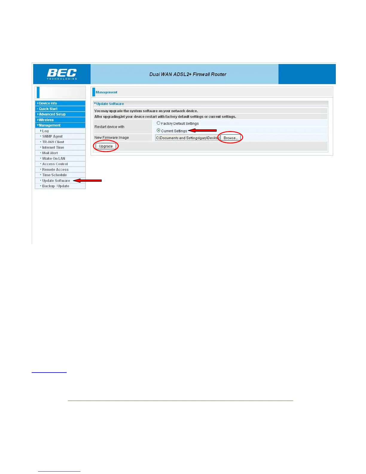 Next click on the “Browse” button and select the firmware file “BEC7800R2_2.02e.RC3-dss3.rfw”