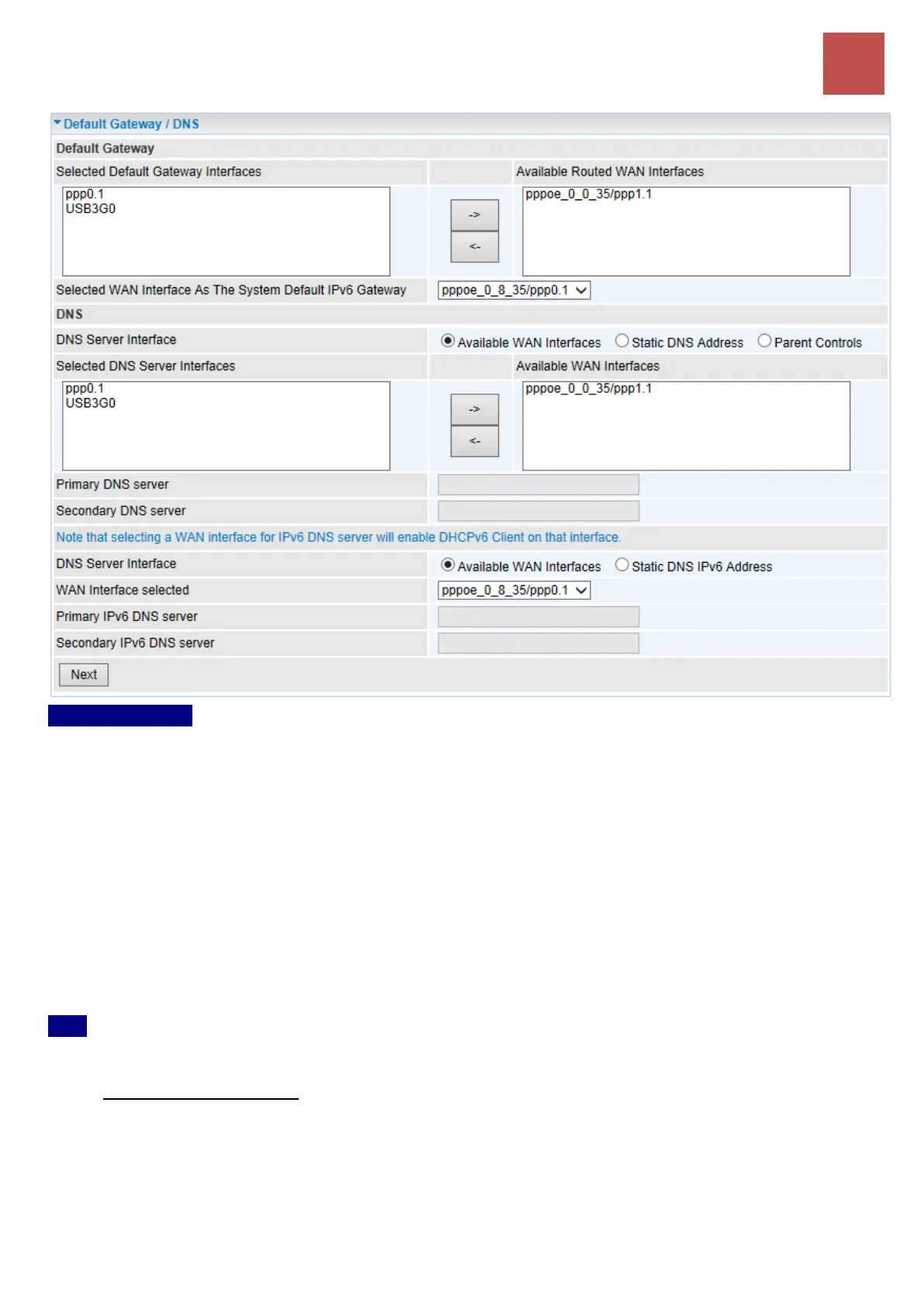 1. Available WAN interfaces: Select a desirable WAN interface from Available WAN