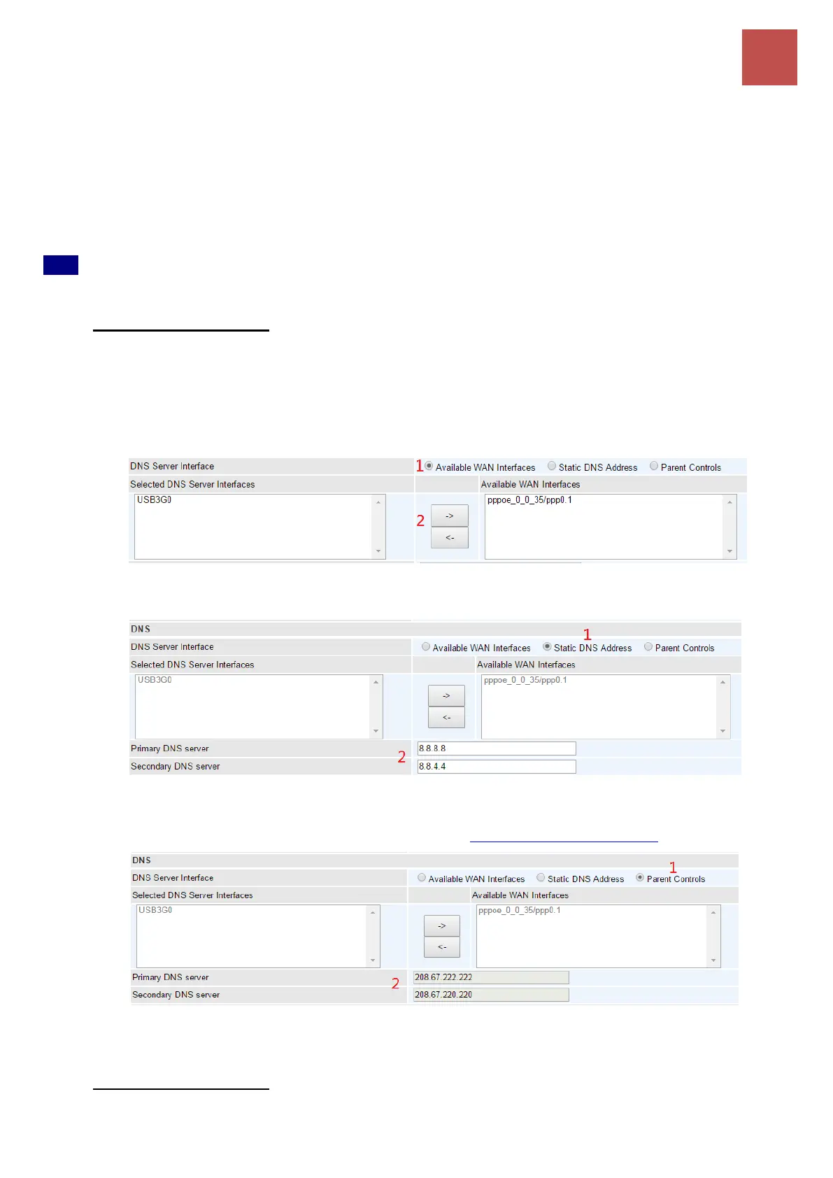 1. Available WAN interfaces: If your Internet Service Provider assigns DNS server address