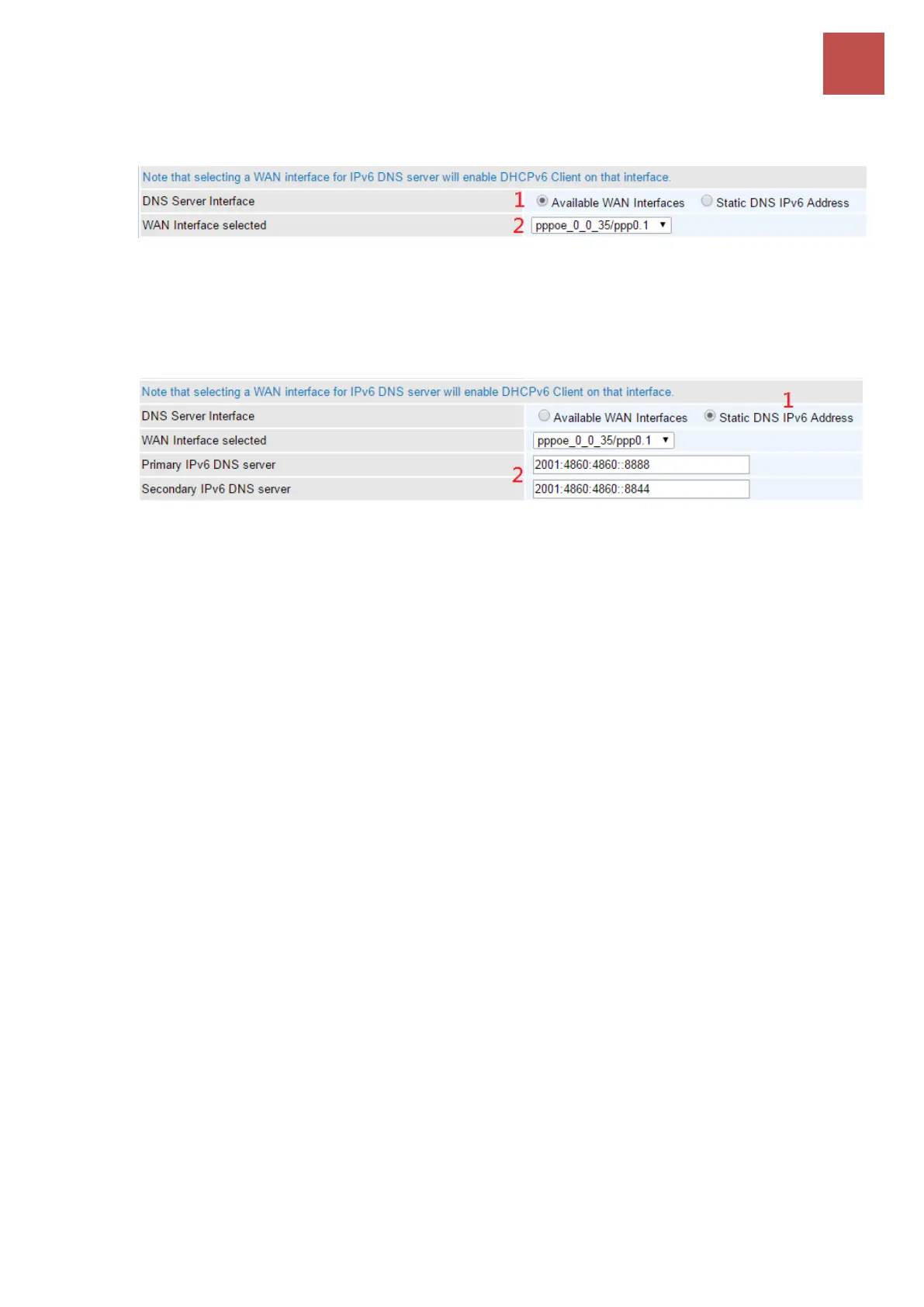 along with the WAN connection, please select an appropriated Ipv6 WAN interface from