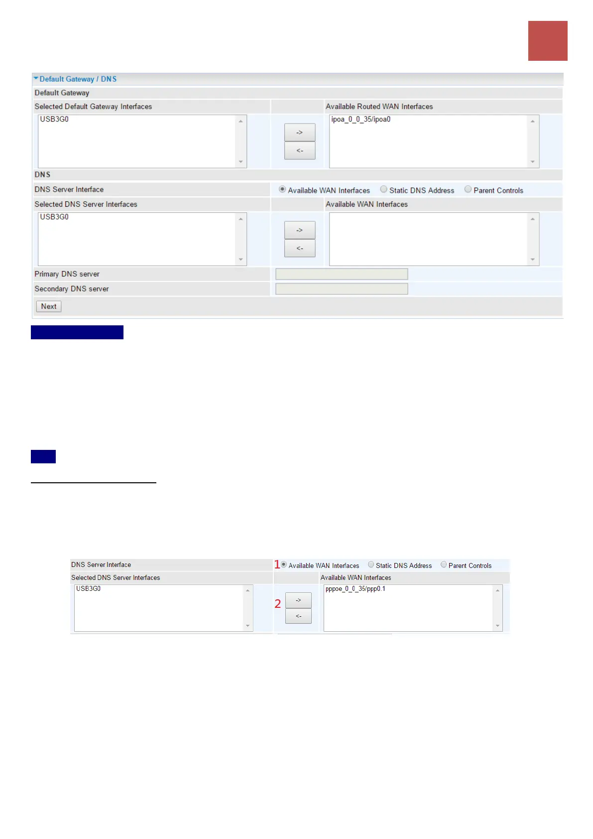 Available WAN interfaces: Select a desirable WAN interface from Available WAN Interface