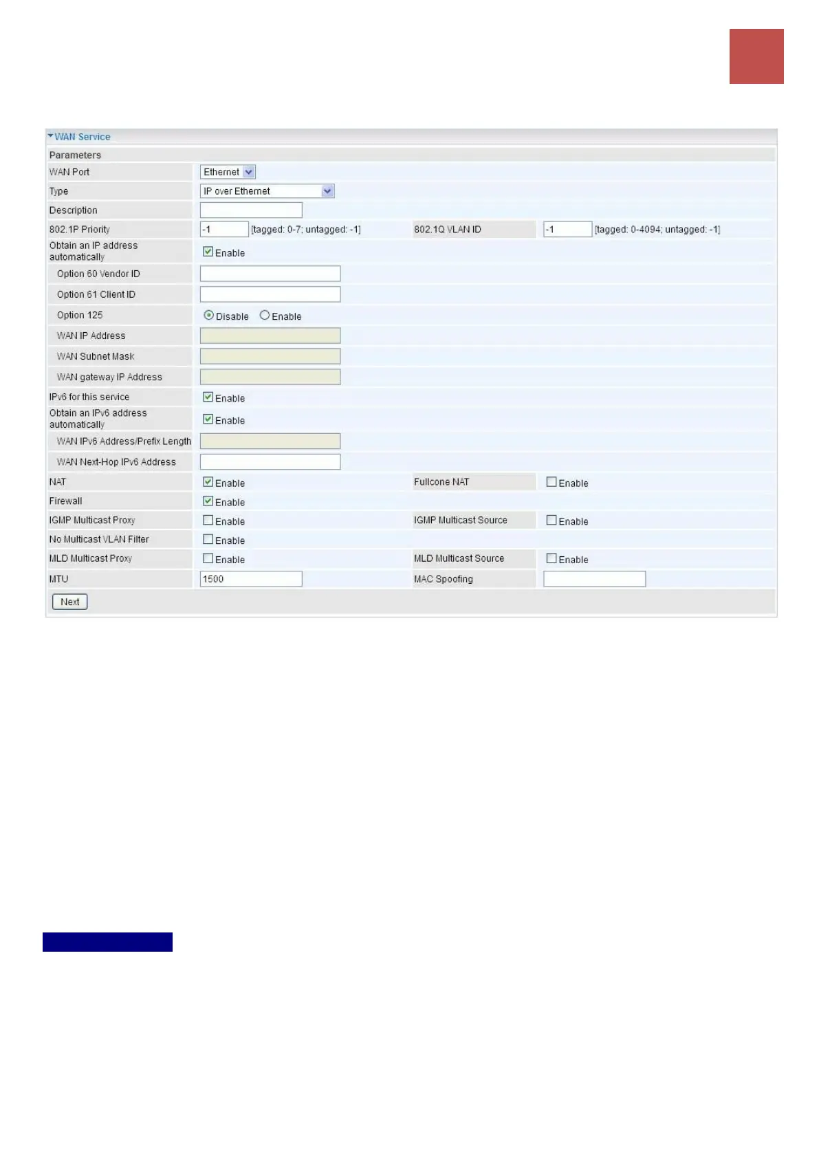 802.1P Priority: The parameter indicates the frame priority level from 0 (lowest) to 7 (highest), which